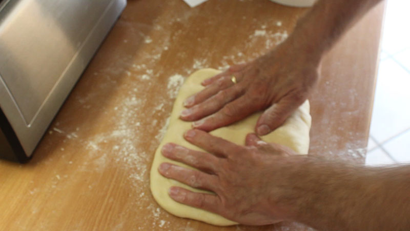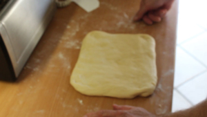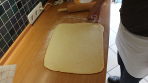 Nach dem ersten Ausrollen (siehe Video 1), den Teig mit einem Tuch abdecken und nochmals 20 Minuten ruhen lassen.